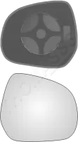 Lewy ogrzewany wkład asferyczny lusterka - z plastikiem montażowym typu E0 i oddalającym szkłem z grzałką [#389]